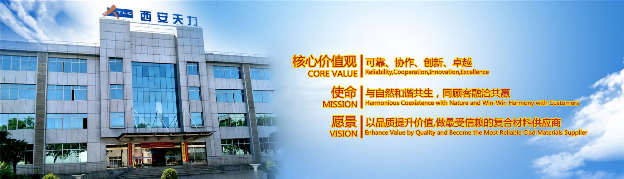 西安天力金屬復(fù)合材料股份有限公司是西北有色金屬研究院(集團(tuán))產(chǎn)業(yè)化上市公司“西部材料”控股的獨(dú)立法人公司,是專業(yè)從事層狀金屬復(fù)合材料研究及生產(chǎn)的高新技術(shù)企業(yè),成立于2003年12月25日,位于西安經(jīng)濟(jì)技術(shù)開發(fā)區(qū)涇渭工業(yè)園,注冊(cè)資本10895萬股,擁有生產(chǎn)廠房23000余平米,各類生產(chǎn)設(shè)備200余臺(tái)套及兩塊條件優(yōu)越的爆炸復(fù)合場(chǎng)地,形成年產(chǎn)25000噸層狀復(fù)合材料的生產(chǎn)加工能力……